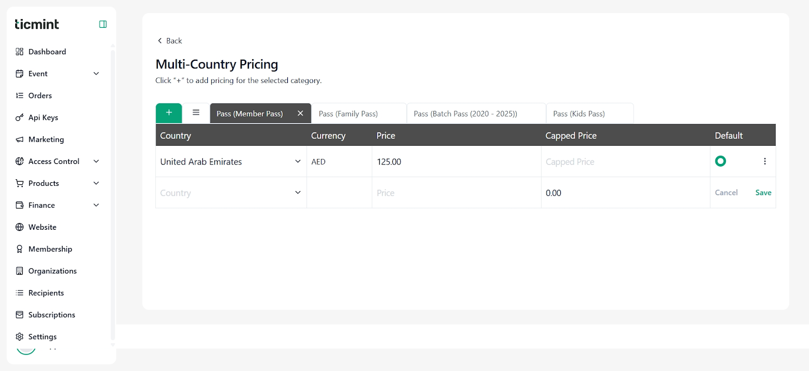 Multi-country pricing allows you to define different ticket prices for different countries.