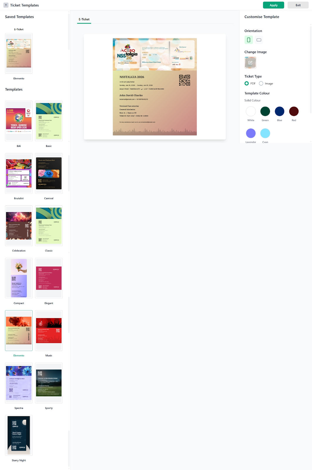 The Ticket Template defines how your ticket will look when issued to attendees.
