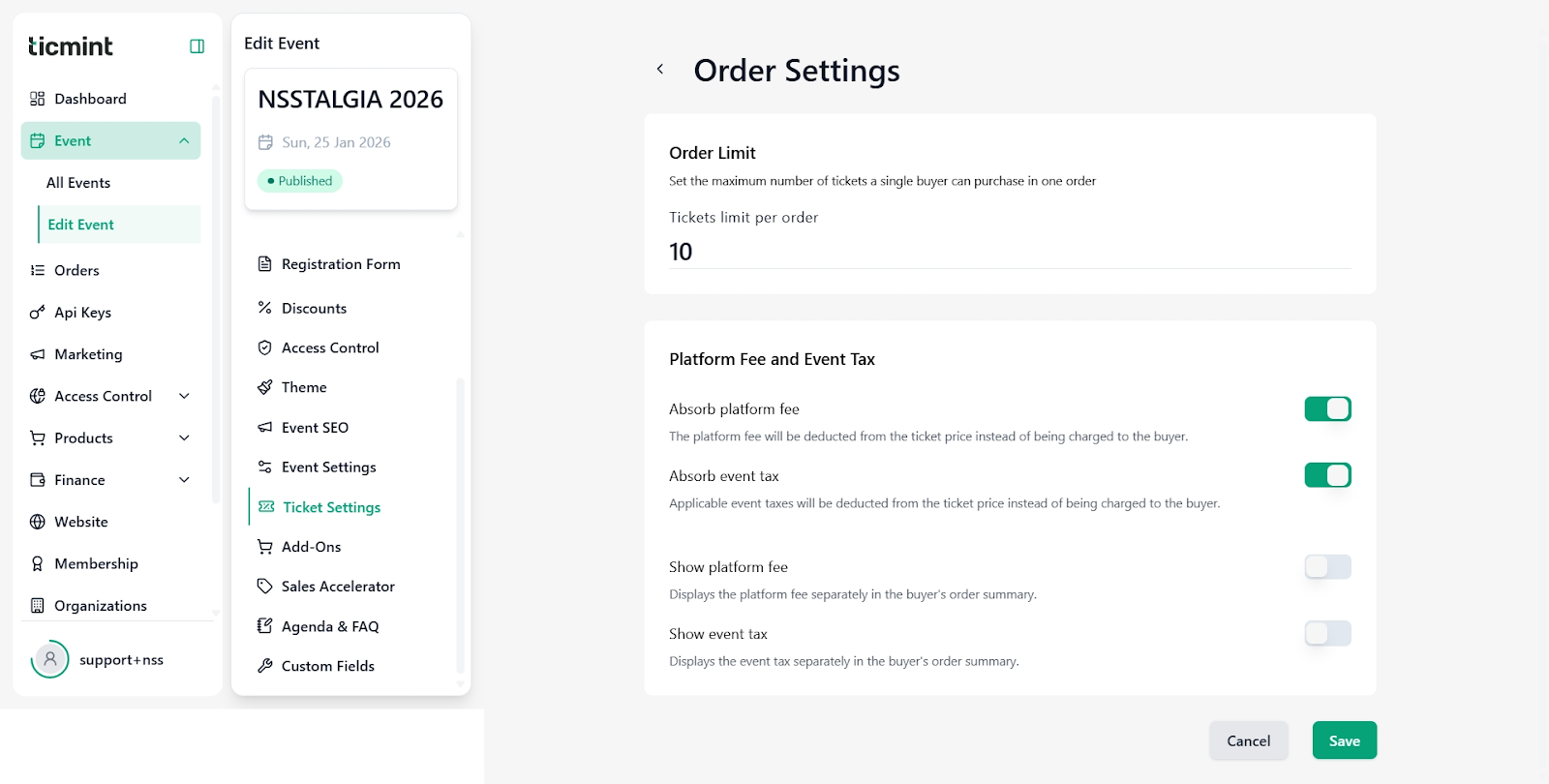 This document provides a step-by-step guide to help organisers configure Ticket Settings for their events on the Ticmint Support Portal. Ticket Settings allow you to control ticket appearance, pricing behaviour, checkout rules, taxes, upgrades, and additional fees.