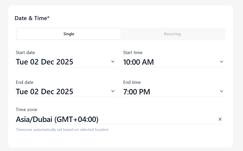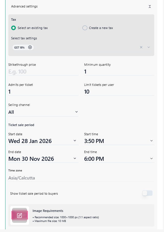 ⚠️ Note: The total ticket capacity across ticket types cannot exceed the section capacity.