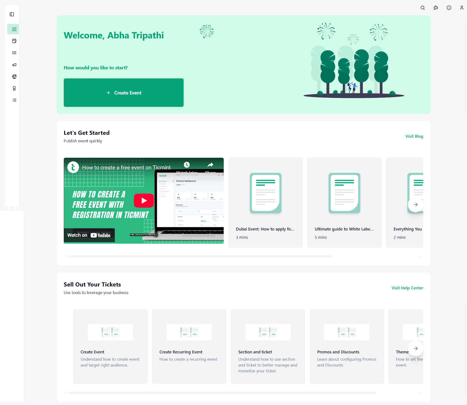 Log in to your Ticmint Dashboard using your registered email or Google account.