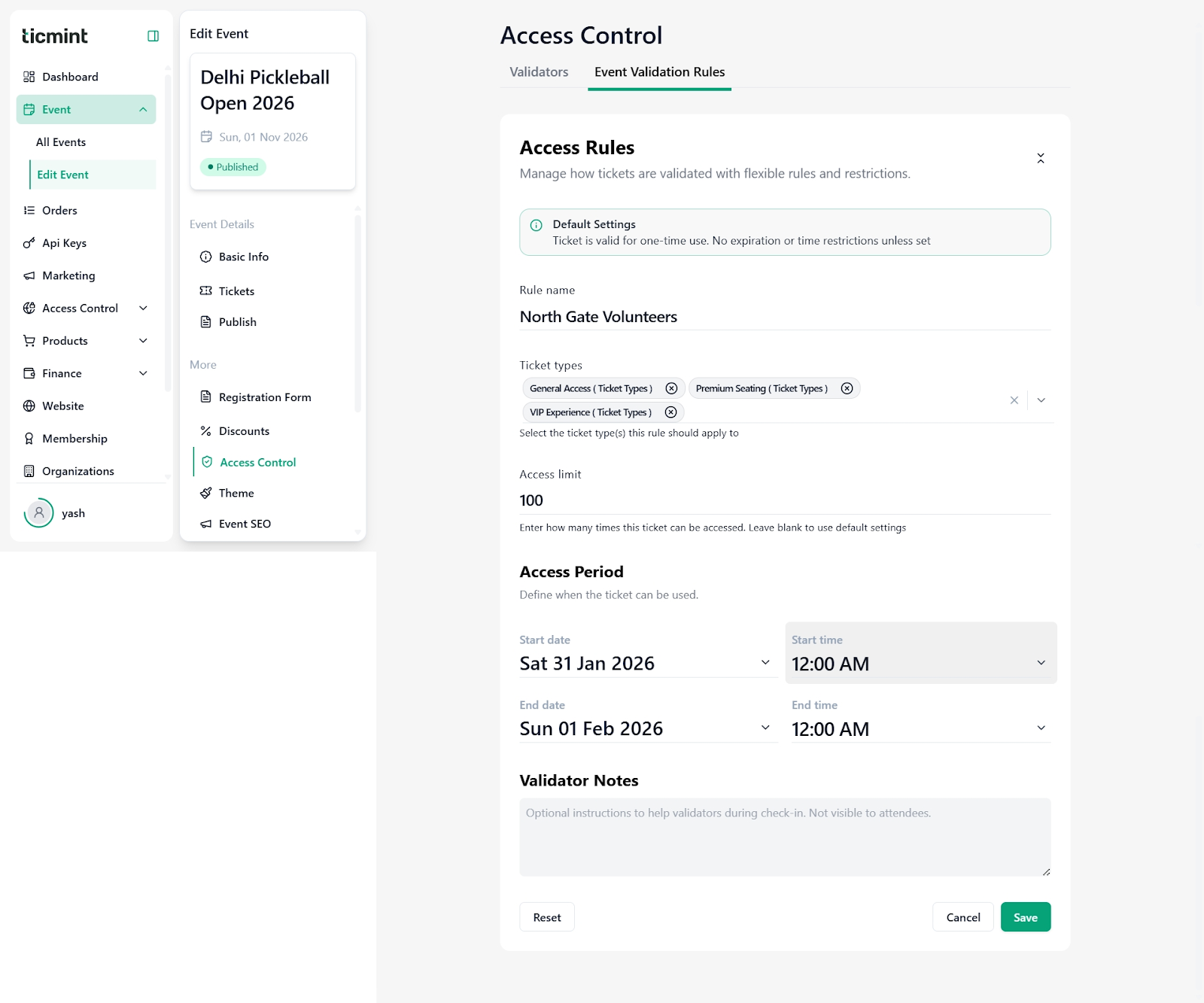 This document provides a step-by-step guide to editing and managing Access Control for an existing event on the Ticmint Support Portal. Access Control helps organisers manage ticket validation, restrict entry to authorised attendees, and assign validators to specific zones for smooth and secure event operations.