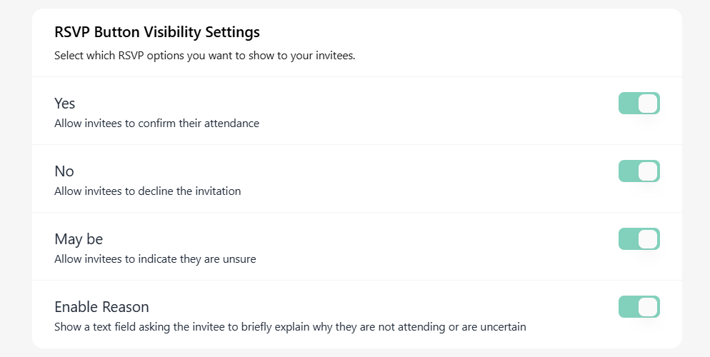 Enable Reason – Displays a text field for invitees to explain why they are declining or unsure